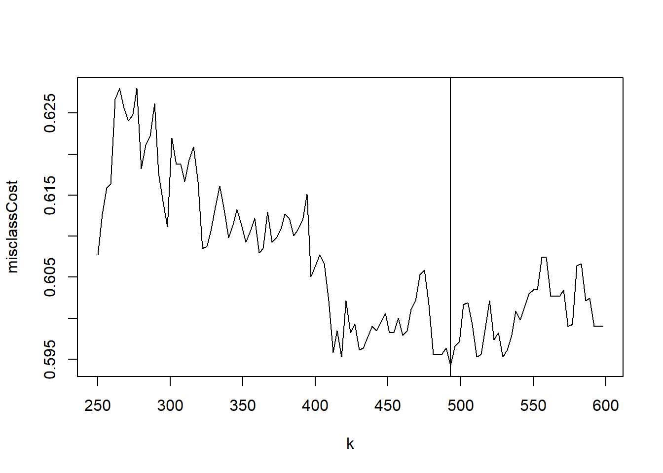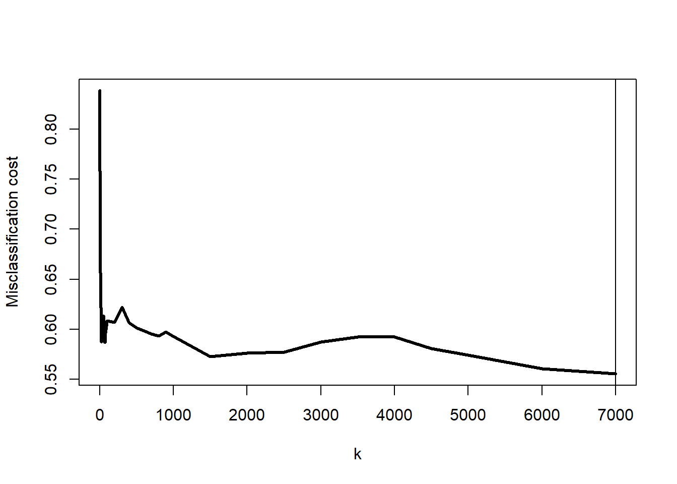 Figure 5: Misclassification cost by choice of \(k\)