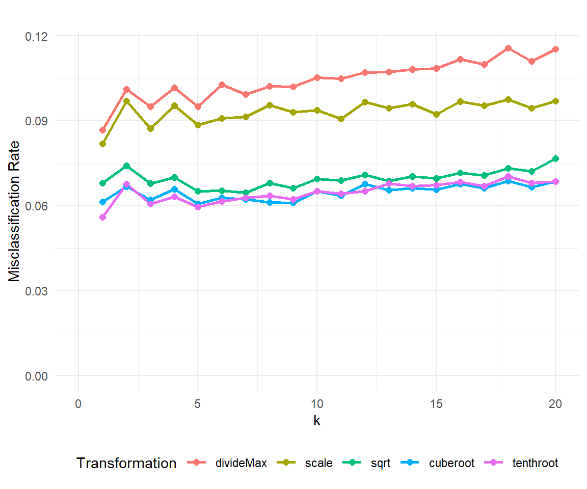 Figure 11: Misclassification Rate by \(k\) and Transformation