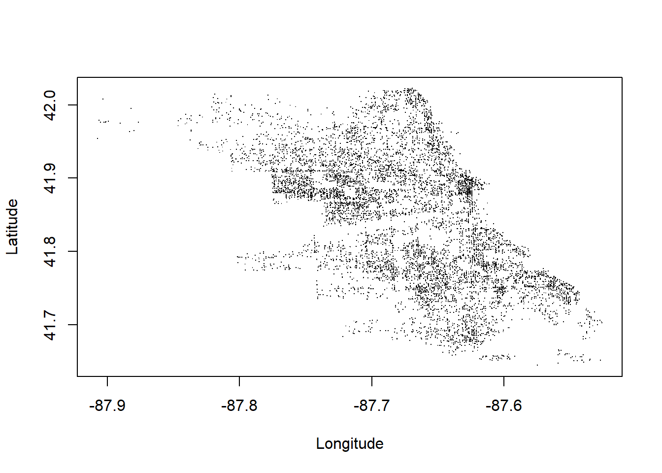 scan(what="", file="Crimes_-_2001_to_present.csv", nlines=5, sep="\n")[1] "ID,Case Number,Date,Block,IUCR,Primary Type,Description,Location Description,Arrest,Domestic,Beat,District,Ward,Community Area,FBI Code,X Coordinate,Y Coordinate,Year,Updated On,Latitude,Longitude,Location"