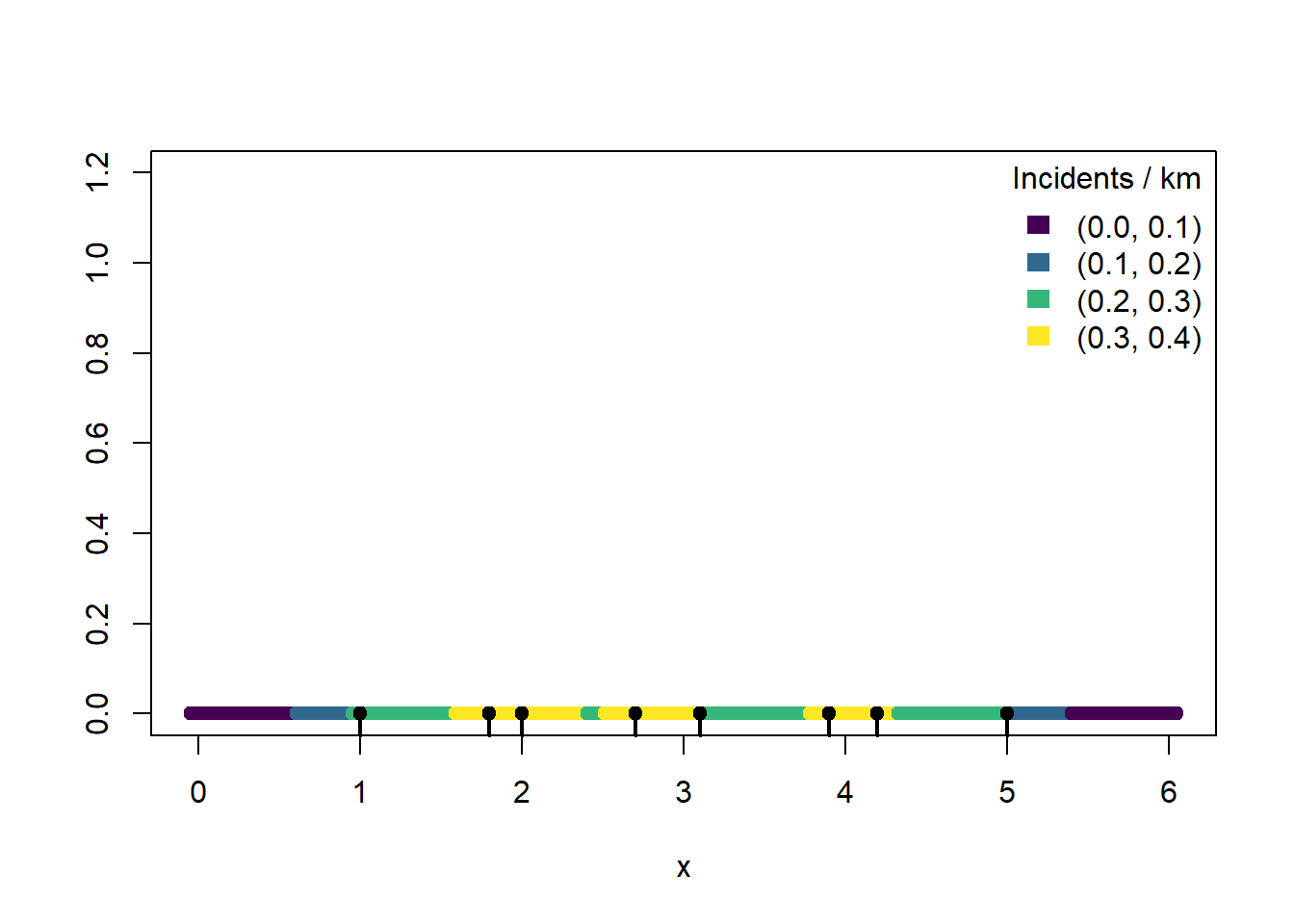 kdeCarTheft$zKM2Year <- kdeCarTheft$z * nrow(xy) * 10^6