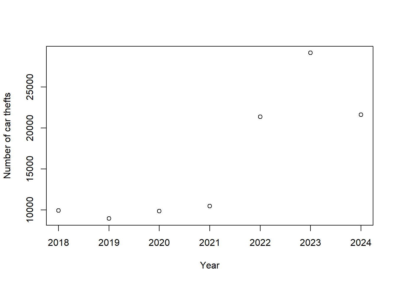 htmltools::tagList(maps)Car thefts spiked in between 2022 and 2024.